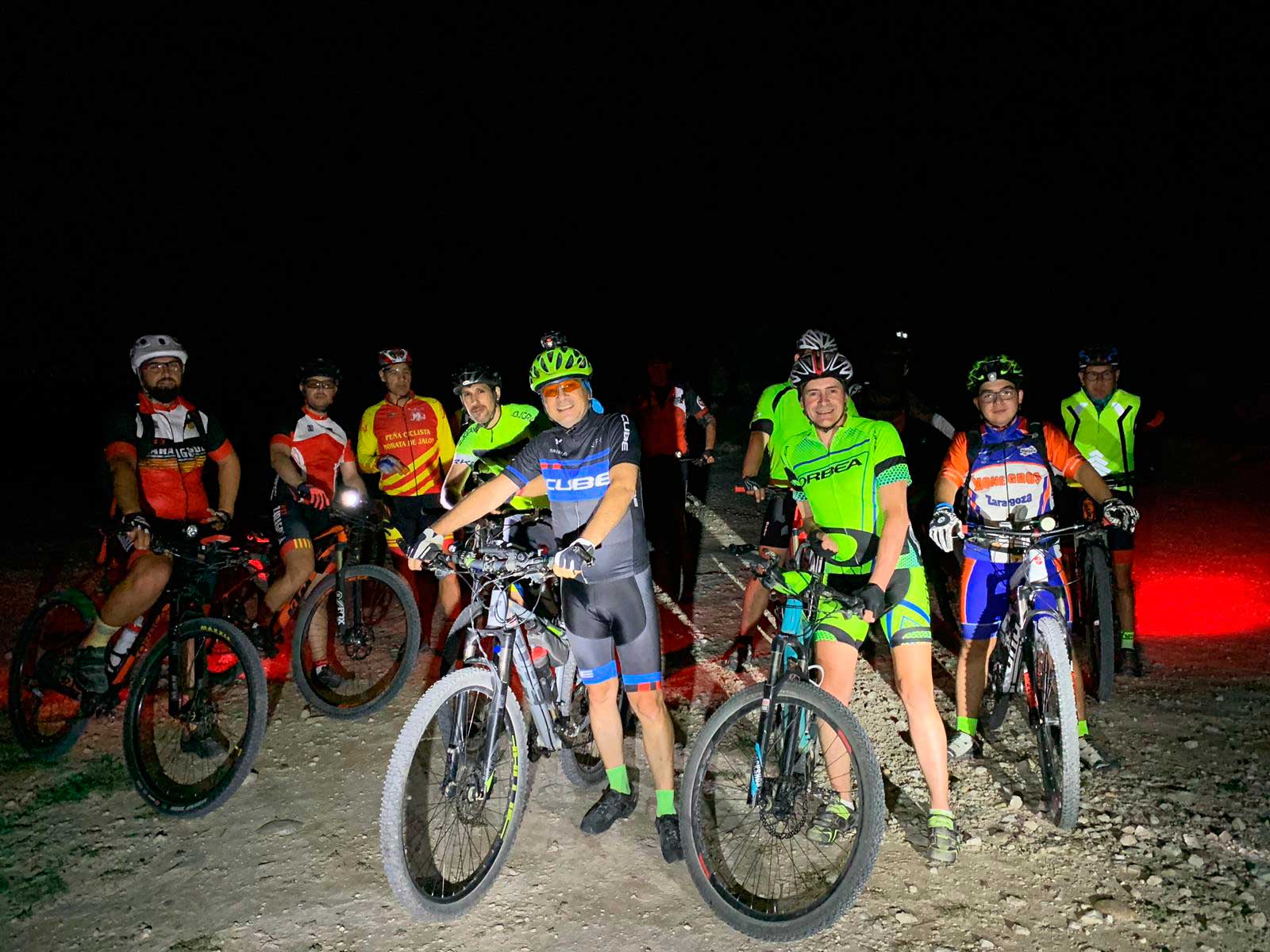 La noche cayó como un mazazo, rápida, inexorable, cubriendo todo con su negra ala de cuervo y haciendo que el paisaje se viera eterno, sin fin , incapaz de vislumbrar un horizonte o incluso tan sólo un poco más allá de lo que daban nuestras humildes luces. Nos envolvió el frío, cambió la sonoridad del entorno y allí estábamos , en una subida suave pero interminable. Podía adivinar de todas formas dónde se encontraba el final , ya que las luces traseras iban desapareciendo una tras otra tras coronar la cima. Ya arriba, nos reagrupamos, nos hicimos unas fotos y nos empeñamos en llegar a la balsa nueva. Esta parte del camino ya es conocida, al menos de día, quiero decir, la noche no es tan sólo esa maravillosa negrura, ese misterio insondable, la noche te obliga también a respetarla, con una atención especial , recordándote que es madre de los cuentos de viejas y te hace sentir , mostrando todo el manto estrellado, cuan pequeño e insignificante eres . De esta forma te confunde, te aturde, haciendo que todas las direcciones sean la misma, haciendo que lugares que de día son conocidos, de noche sean un paraje extraño.