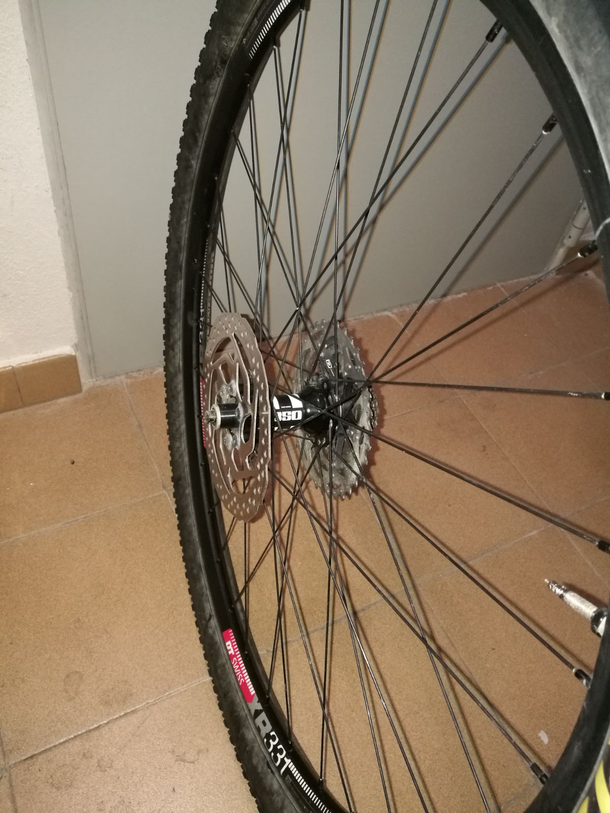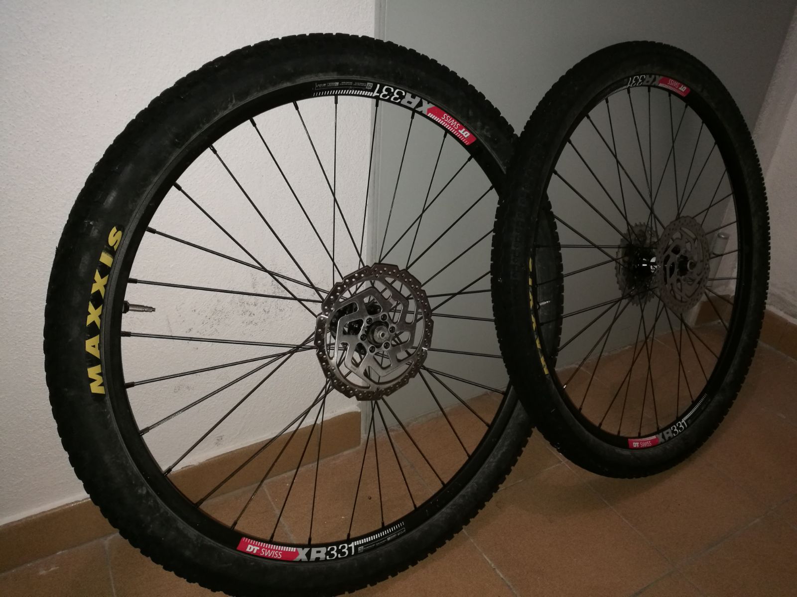 Con las cubiertas Tubeless ready Maxxis Ardent EXO delante y Crossmark EXO detrás estrenadas con las llantas, la piñonera (vieja) los frenos de disco shimano:
