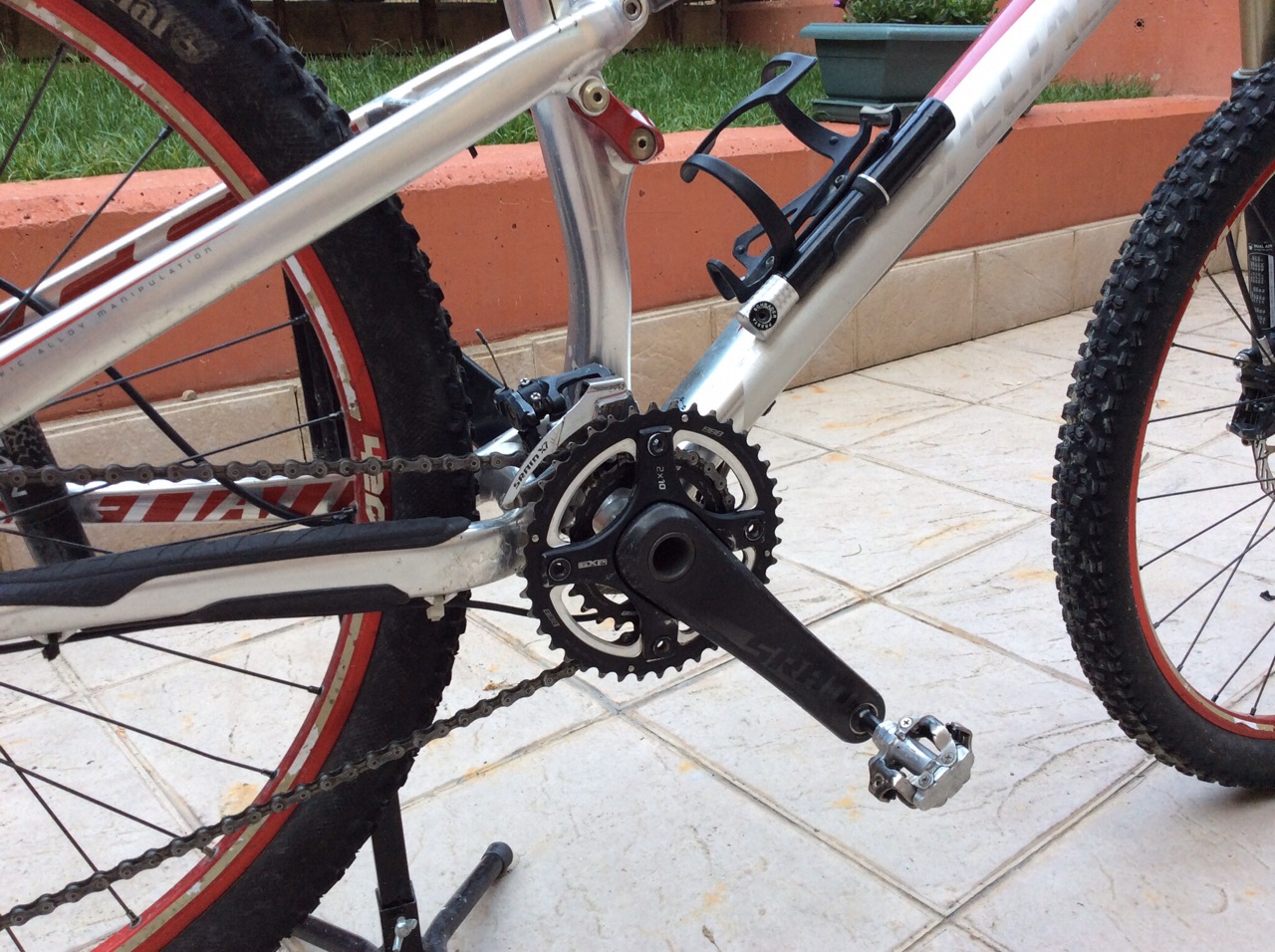 Cuadro de aluminio M5, rodamientos sellados en pivotes.