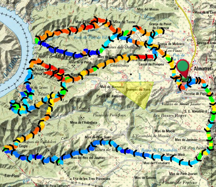 Almatret está a una hora y media más o menos de Zaragoza, así que como la idea es empezar a pedalear a las 9, habría que salir sobre las 7