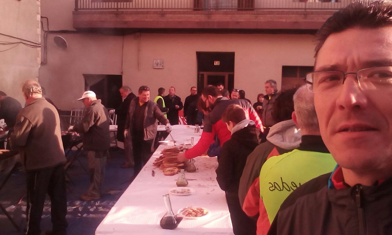 Eran las 8 y poco, y hacia frío y viento. LLegando con tiempo de sobra al pueblo, nos ha dado tiempo de tomar el primer avituallamiento antes de dar 1 pedalada.