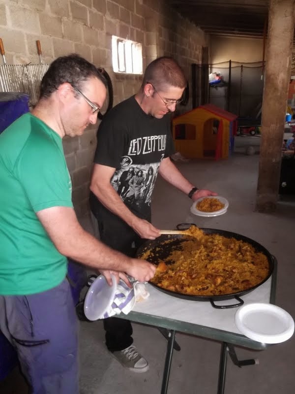 Para recuperar, degustación de paella y guiso de toro que nos tenian preparado y un buen rato de risas, sobremesa y buen rollo, para repetir.