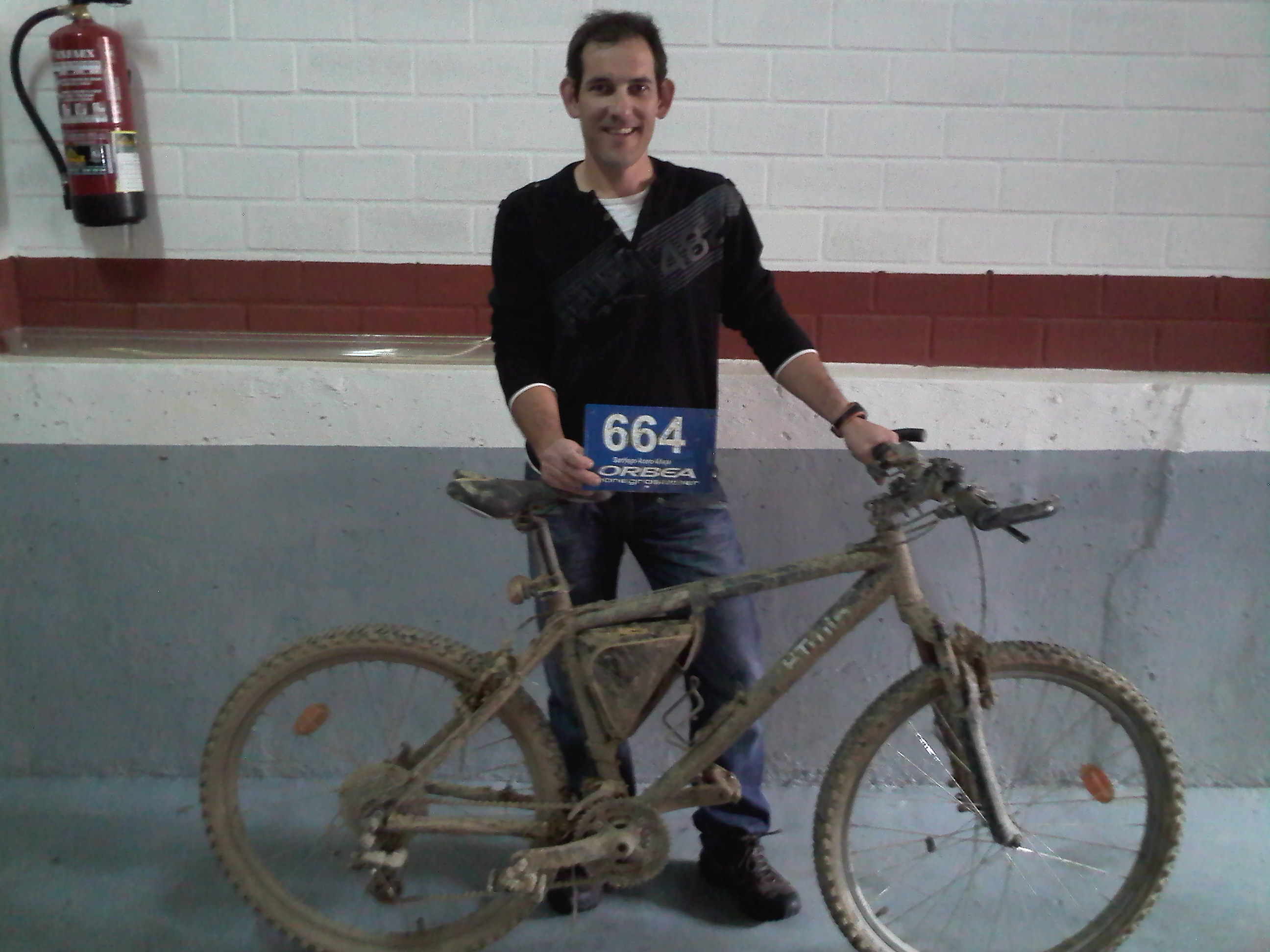 Pero si no puedes con 2000 personas, cómo te atreves con 6000. No es tolerable que los que llegamos tarde no tengamos los mismos servicios que los demás. Yo después de superar el reto dos veces me lo pensaré mucho para el año que viene (y no es un calentón). Por lo demás un 10 al grupo, la bici amenazó con avería desde el km 60 pero después del barro ni un ruido (igual tenía los oídos taponaos), incluso podía cambiar.