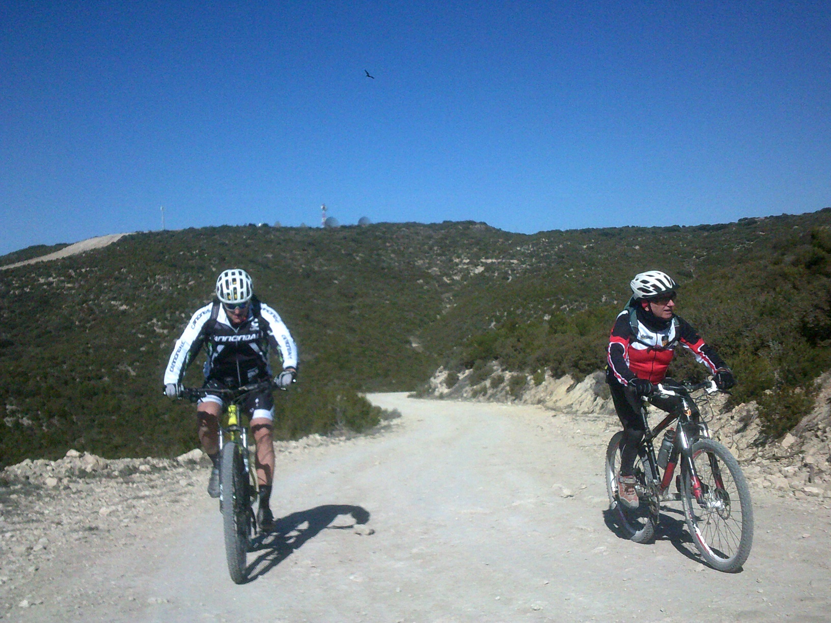 Conforme nos acercábamos a la Mula mis fuerzas empezaron a flaquear, no estaba teniendo un buen día, no había dormido apenas la noche anterior y lo estaba acusando a todas luces. Cuidado, no pretendo excusarme, siempre he sido muy maniqueista y pienso que las excusas son un tono de gris inaceptable . Pascual y Vicente se prestaron a quitarnos el viento tanto a Miguelón como a mi, regalándonos su rueda. El tramo antes de llegar fue mas bien una agonía que una marcha ciclista. En un punto José H, no se puede ser mejor persona, nos preguntó que quíen se atrevía a subir y quíen no. Yo , por supuesto , me apunté a los de la subida pero reflexioné por un momento y tomé una decisión que más tarde vi que era la acertada. Pensé que si bien estos dos grandes , léase Vicente y Pascual, habían sacrificado su marcha para facilitar la nuestra, no era justo ahora seguir pidiéndoles este esfuerzo, por lo tanto me ofrecí a quedarme con Miguel y dejar que ellos disfrutaran del tramo que les quedaba. Aquí no se queda nadie solo y ya habrá días para más cosas.