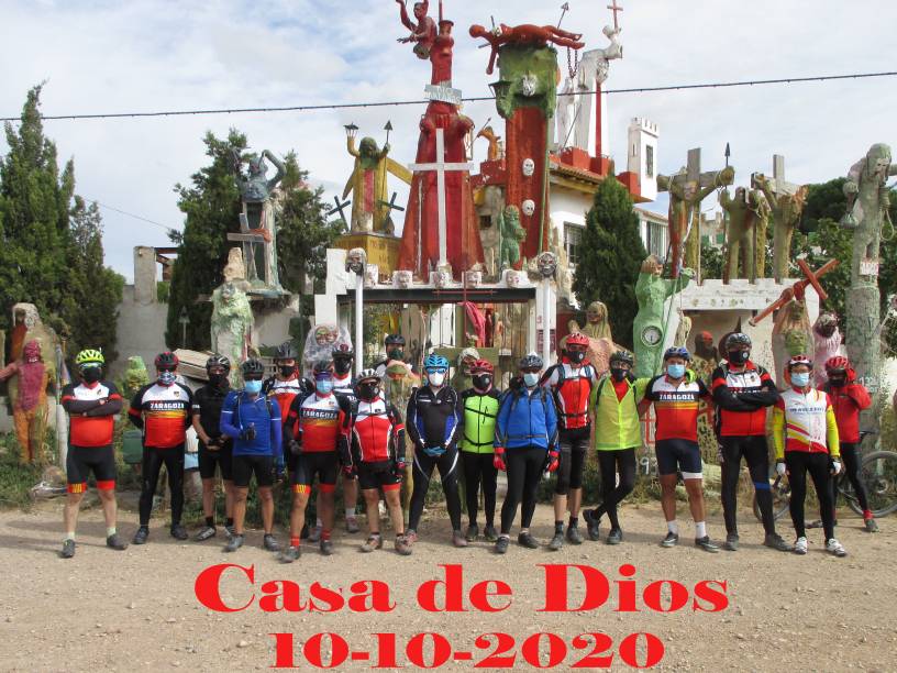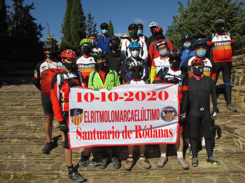 Marcaba más de ochocientos metros de altitud, desde ese otero todo se divisaba debajo nuestro y, allí mismo, delante de nosotros, la peña blanca. Se mostraba majestuosa y eterna, gobernando desde su atalaya. Junto a nosotros pudimos advertir, gracias a las indicaciones de José , una pequeña piedra, un monumento a un ciclista caído, cuyo alias era Scooby y que homenajeaba su club , el de Calatorao. Reagrupamos enseguida, nos reencontramos con nuestros copañeros y amigos. Chelis, Chomo y su cuñado, Jorge y su padre... y los dos de las bicicletas eléctricas, Jesús y Alfredo. Volvimos a completar el número , a ser diecinueve , seguimos rodando.