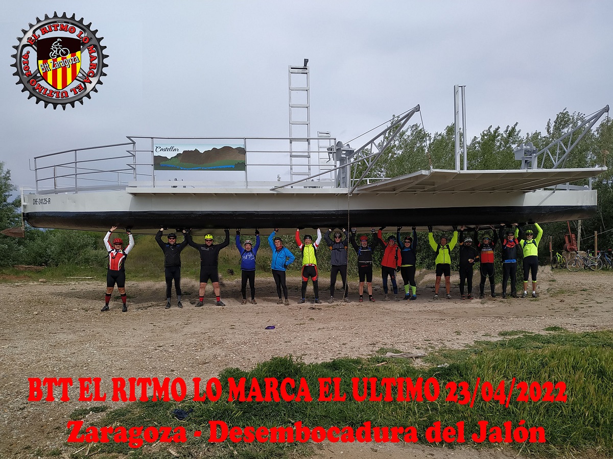 Continuamos por la ribera del río, dibujándola con destreza, como uno de los mejores maestros holandeses. El verde reventón dominaba las panorámicas. Cuanto más avanzábamos en dirección Alagón, más oscuro se mostraba el cielo. Incluso oí a Gorka decir algo como que un poco más adelante estaba lloviendo por cómo se veía aquella nube. La segunda barcaza se encontraba extrañamente fuera del agua, con probabilidad sufriendo alguna clase de reparación o bien adecentando su aspecto con una capa de pintura. Sujeta por unos enormes burros, alzada del suelo el suficiente espacio para que una persona pudiera pasar por debajo sin dificultad alguna. Este fue nuestro segundo alto, ya sabes que nosotros hacemos deporte, si , pero que lo nuestro es , a veces, medio excursión. Pedaleamos los escasos metros que nos quedaban hasta la desembocadura del río Jalón ,que era nuestro verdadero destino.