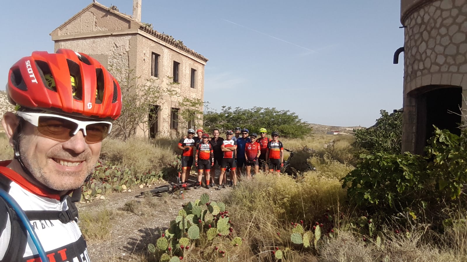 Primera baja del día (ya me voy acostumbrando) y con los once que quedamos me planto en Torrecilla rapidamente. Hoy la parte turistica es buscar la antigua estación del tren, parece ser que la usarón para alguna escena de un spaguetti western en los sesenta y eso es excusa para soltarles la charla a los colegas.