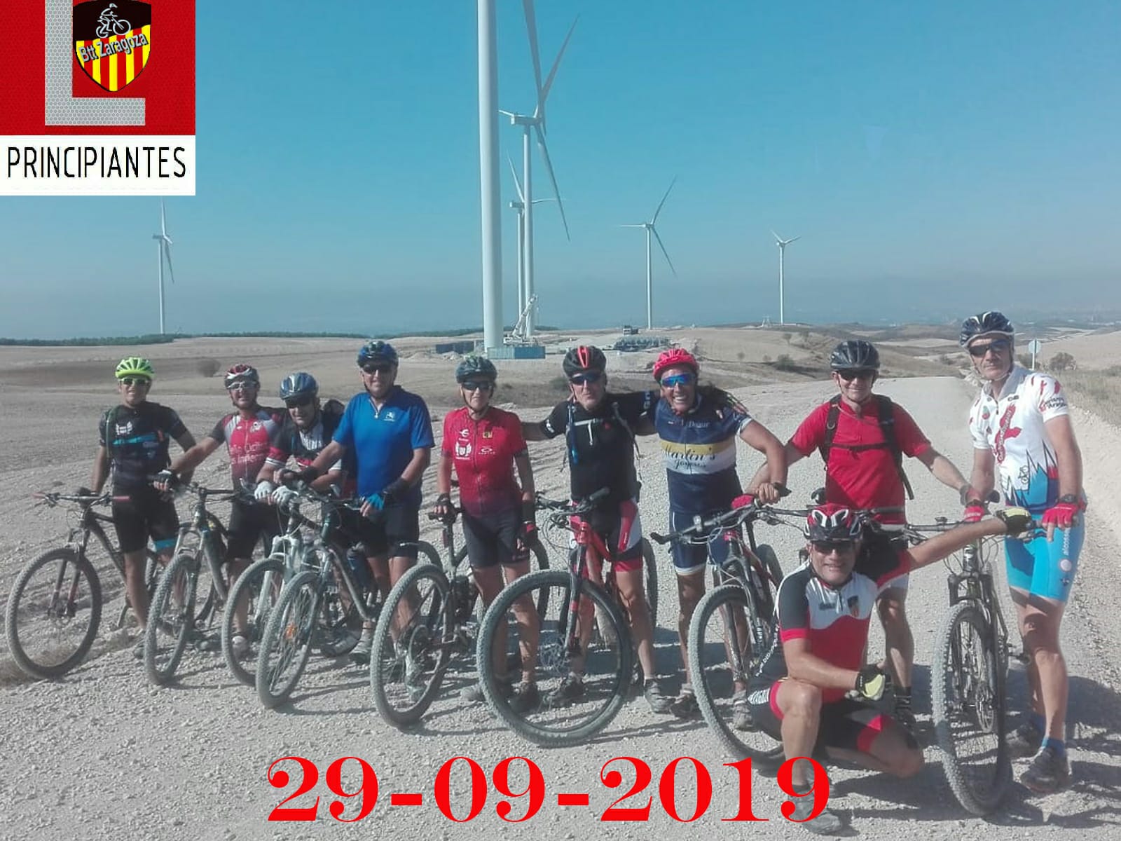 . Continuamos hasta Alfajarín con algunos charcos y llegando a Nuez de Ebro primera salida de la ruta (esto se alargará mas de lo previsto) pero hay que complacer al personal y nos subimos a Montesblancos. Bajada y de nuevo al polvo del camino, la gente tira pero reagrupamos sin problema y nos subimos al parque Eólico por el supuesto galacho de los Pinos. A la salida el camino cortado por una zanja y siguiendo al lider, todos han tirado a saltar la zanja (tenemos que hablar Sebas