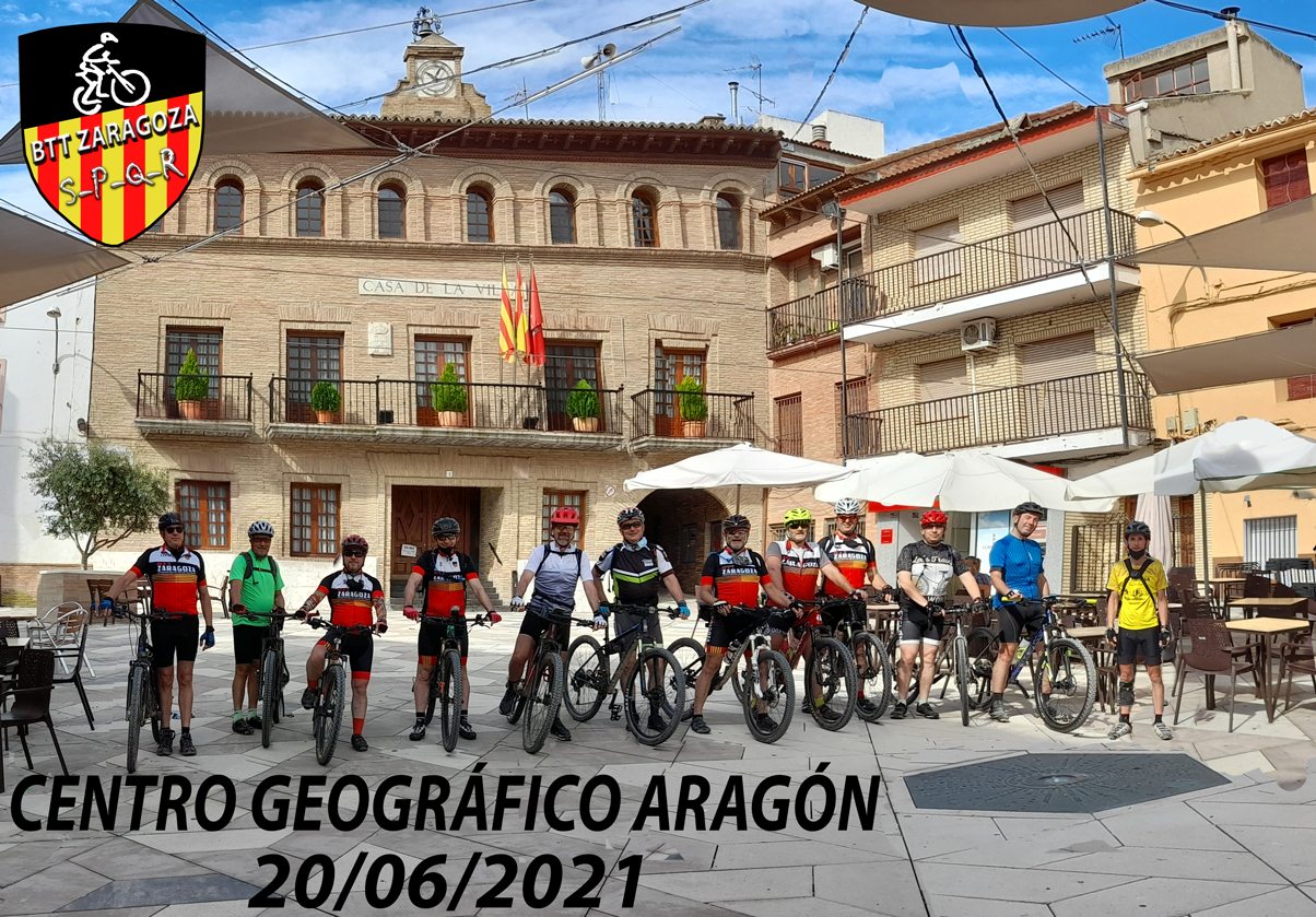 Pues raudos y veloces nos dirijimos a Fuentes. La verdad… como es todo llano llegamos en un visto y no visto. Fuimos a su plaza en donde hay una placa en el suelo relativa a esto del centro de Aragón. La plaza está maja: el Ayuntamiento, alguna que otra casa antigua y varios bares con sus terrazas/veladores, en donde comentamos que se estaría de cine echando un buen almuerzo. La mañana invitaba desde luego. Nos hubierámos quedado sin ningún problema… Foto de grupo y a corrrer.