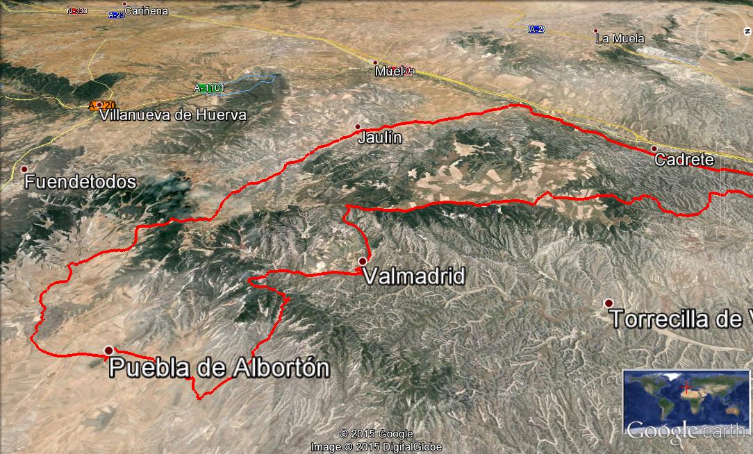 Jaulin por el camino de Valdaja, y Bajando a La Puebla de Albortón por la senda Villanueva. Subiremos a las crestas de Valdesimpor por el Val del Reguero, y tras recorrerlas en sentido inverso al Sillero, bajaremos con cuidado a Valmadrid por los "Melocotones", y vuelta a la Plana hasta Bosque Alto . la vuelta por el Montañésson 90 km con unos 1250 m de desnivel ( más de lo que dice Wikiloc), sin dificultades técnicas importantes (la senda es fácil y la bajada de melocotones es camino pero con "piedra suelta"), y con un nivel físico medio porque deberíamos hacerlo en unas 5 horas .