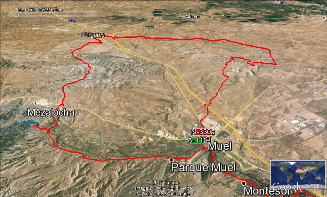 Hemos pensado una ruta para llegar hasta muel , subida a la plana del campillo por el camino y vereda de la Torre. De alli bajada a Longares y cruzaremos por los montes del balsete de china y de balsa vieja hasta el pantano de mezalocha. La ida y la vuelta la hacemos por el mismo recorrido de la rivera del huerva para que sea mas directo y mas rapido.