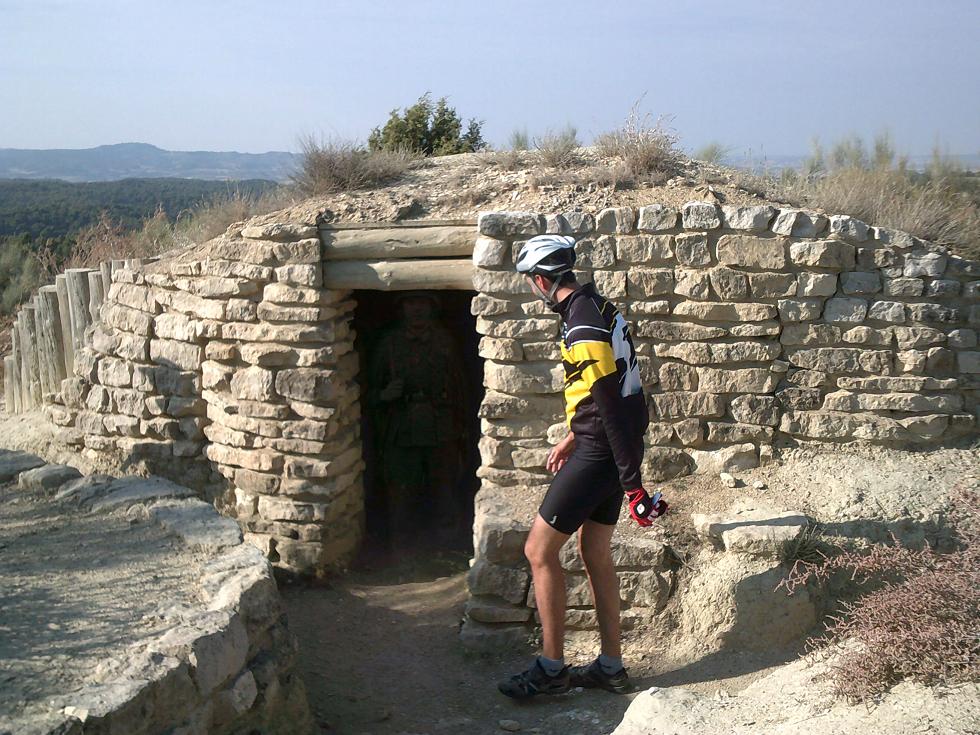 Solo dos pinchazos como incidencia y la visita turistica a las trincheras de Alcubierre y al monumento a los caidos, nos han hecho llegar sobre las 13:10 a Leciñena dando tiempo a la charla y a las cervezas.