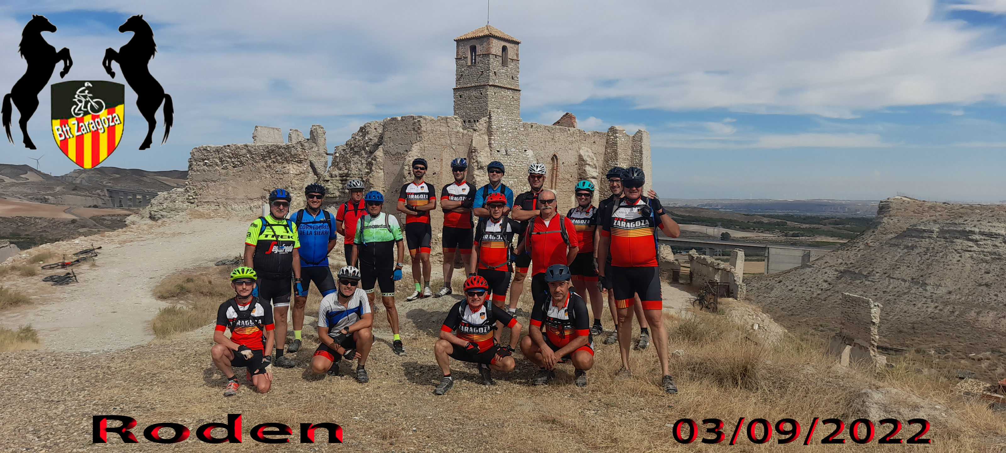 Empezamos la ruta por el camino de La Alfranca, hasta cerca de la pasarela del Bicentenario. Nos desviamos hacia la Cartuja; seguimos a el Burgo de Ebro y a Fuentes. A la salida de Fuentes nos desviamos a la izquierda y empezamos la subida a Rodén. Antes de llegar, Daniel E, nos guía hacia el Cabezo de la Horca, un yacimiento arqueológico. Parada y fotos. Volvemos hacia Rodén Viejo.