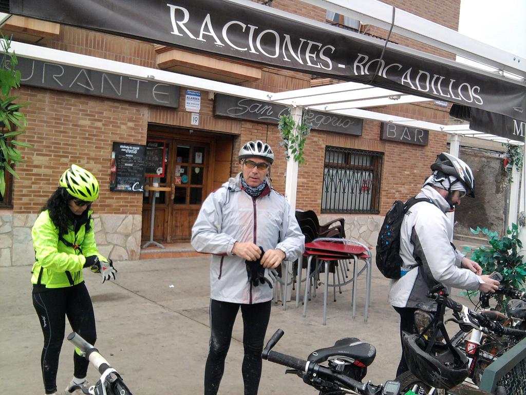 Y como de camino de vuela ya no llovía hemos parado en san Gregorio a reponer fuerzas con pinchito incluido luego lavado de bicis y para casa.