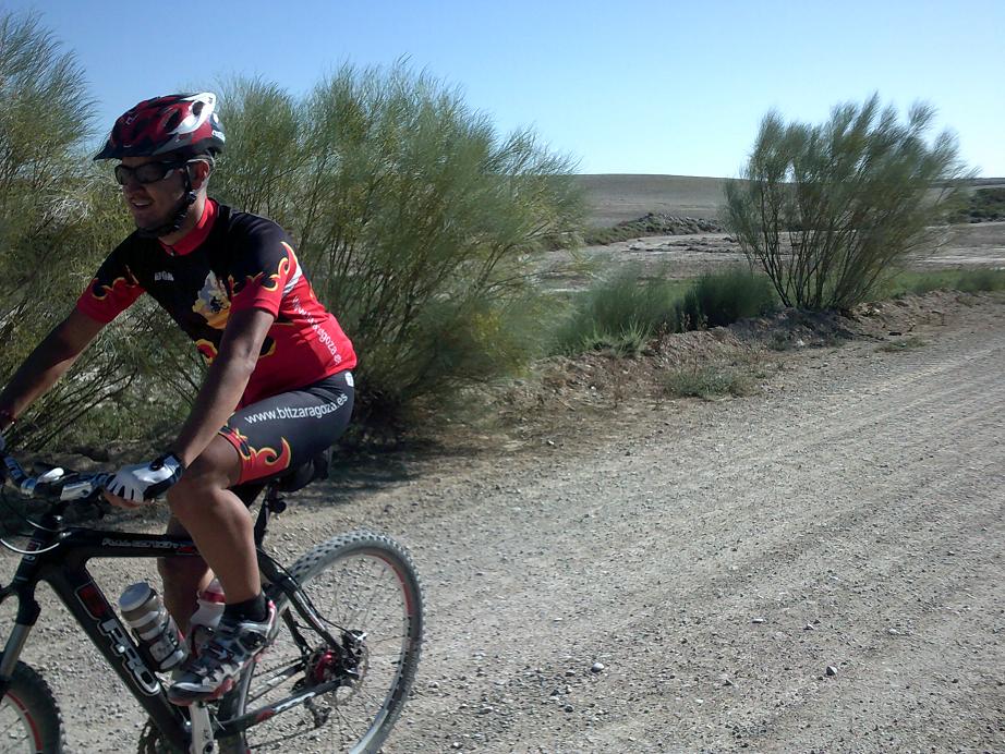 Sin más novedad iniciamos la ruta, pasamos por San juan que están en fiestas y en Villanueva, modifico el recorrido del track del foro y vamos por un camino a la derecha de la carretera y que va entre el rio Gállego y las vias del canfranero.