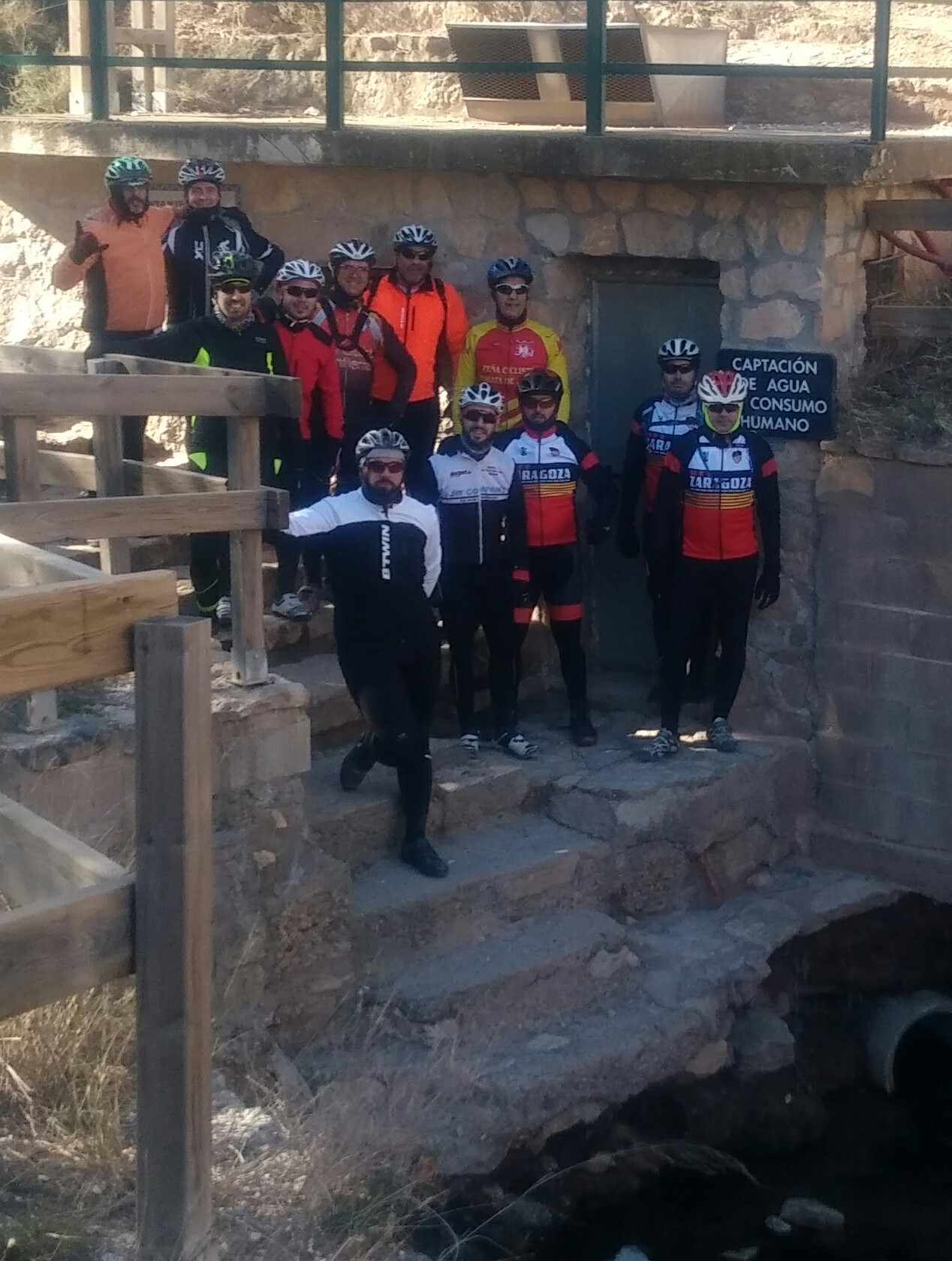 Bajamos (alguno con más dificultades que otros) a hacernos la foto de rigor en el nacimiento del Rio Ginel y vuelta para arriba. ¿Pensábais que lo duro ya había pasado? Después de que José Luis nos animara diciéndonos que todo era cuesta abajo (alguno igual tiene que volver a verse Barrio Sésamo para que Coco le enseñe qué es "arriba" y qué es "abajo"), nos encontramos con que aún tenímos que subir más hasta alcazar la cuota de altitud más alta de la jornada con unos 542mts. El caso es que además de tener que seguir subiendo nos encontramos con todo el cierzo, que aunque había avisado de su presencia no tuvimos que arrostrarlo directamente hasta que nos encontramos de vuelta.