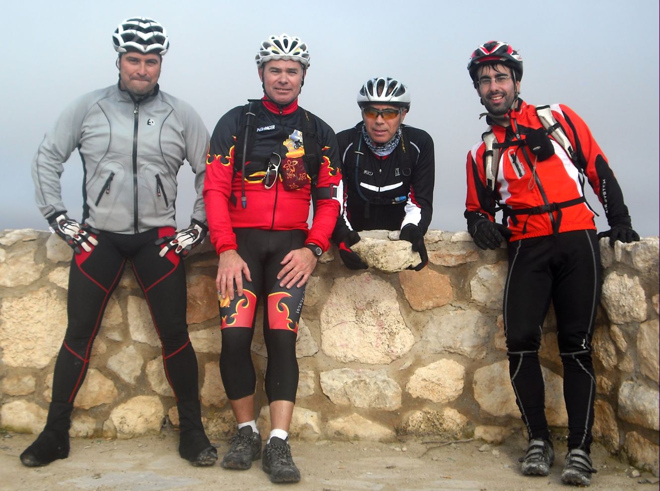 Por lo demas el dia bien, alguno pide que hagamos una cronica, quizas sea el menos indicado del grupo pues llevo dos salidas, pero bueno mas o menos, Nosotros ibamos en el grupo David, juan Carlos, emilio y un servidor, nos costo mucho decidir estrategias, nos dejaron flipados las normas, los puntos geodesicos y sobre todo el bisonte. yo solo ponia la animacion, porque de las planas ando muuuy justito, asi que arrancamos los ultimos, david se acordo de un punto geodesico y de alli nos tiramos al montañes para llegar al mirador de Torrecilla, cruzamos las planas y fuimos al mirador de cadrete, alli emilio se acordo de otro punto geodesico (que a la postre fue anulado por el s juez) total decidimos bajar por salinas, en la cual tuvimos una pequeña caida sin mucha consecuencia (culotte y roseton en la cadera) y cruzamos a almunias, subimos almunias para la foto del arco y a buscar animales y piedras, emilio tbo buen ojo en la piedra pero no tanto como algunos (que barbaridad lo de la piedra oiga) nos cruzamos con el otro grupo (el de felix si no recuerdo mal) y decidimos estirar un poco las piernas para ganarnos la coca-cola del final